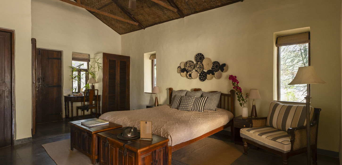 Our premium 2 storied Machan cottage is bathed in natural light offering an expansive 450 sq feet of living space with a spacious bedroom come living area, idyllic writing desk and comfortable armchair, and beautiful upstairs seating perfect for birdwatching or spotting langur, wild boar and deer.